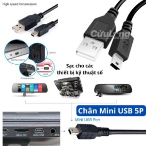 Cáp Mini USB – Dây sạc & truyền dữ liệu cho máy ảnh và thiết bị điện tử