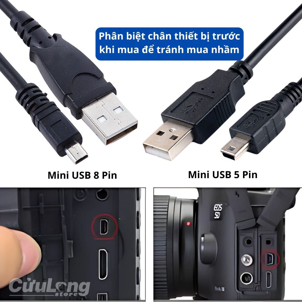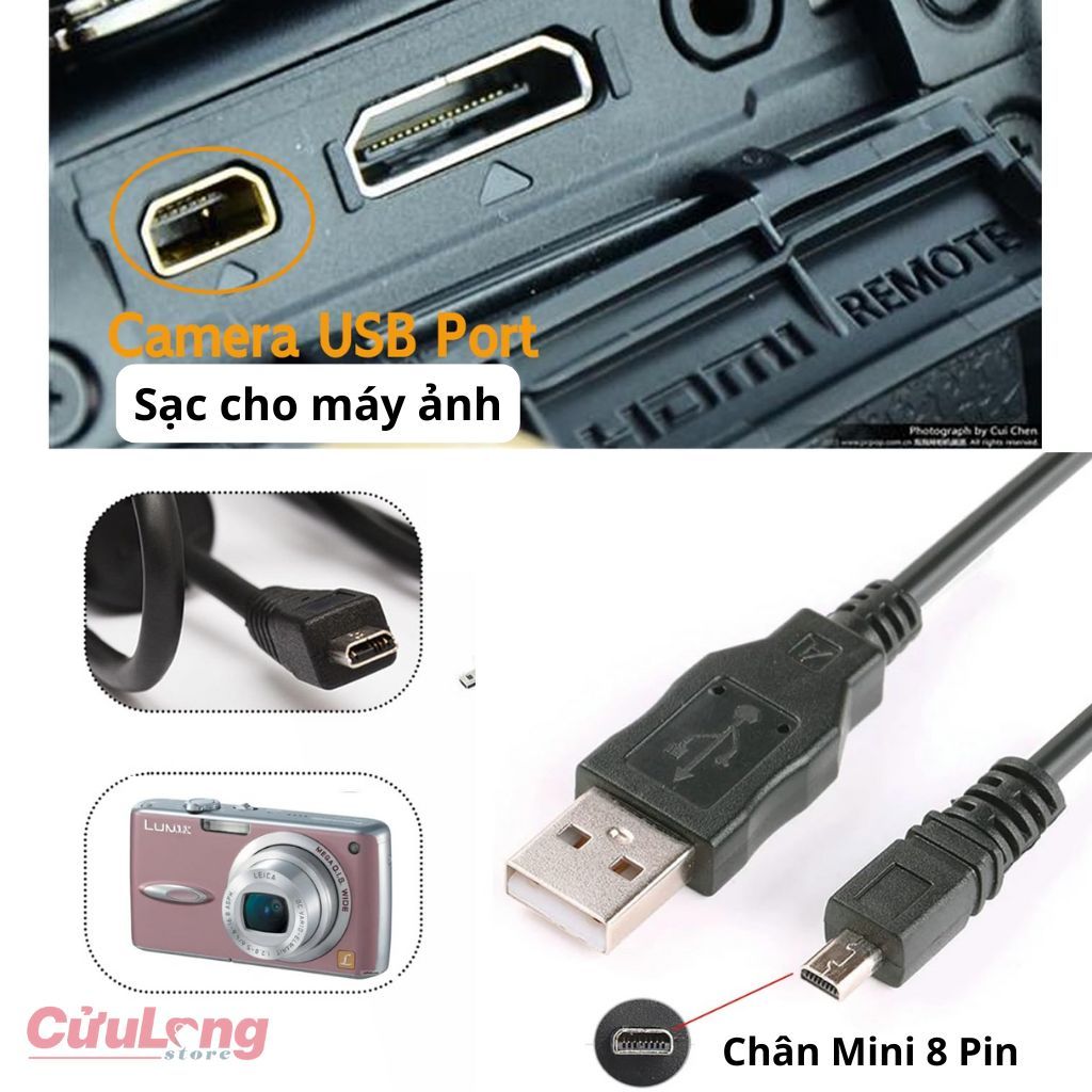 Mini USB 8 Pin UC-E6: Chuyên dùng cho máy ảnh Nikn, Cano, Olymps, truyền dữ liệu và sạc pin.