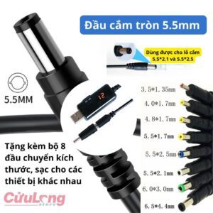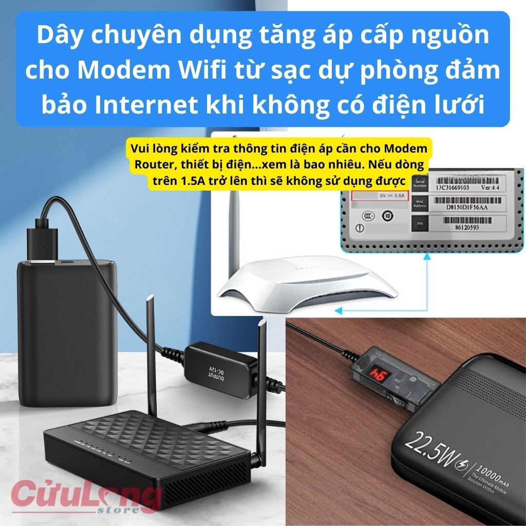Dây Nguồn Wifi 9V 12V 5.5mm Đổi Nguồn Dùng Sạc Dự Phòng Cấp Điện Cho Router Modem Khi Mất Điện