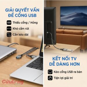 ✔️ Kết nối linh hoạt: Dễ dàng nối dài USB từ mặt sau Tivi, thùng máy PC ra mặt bàn tiện lợi.