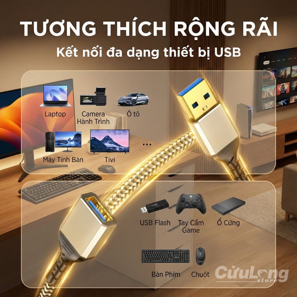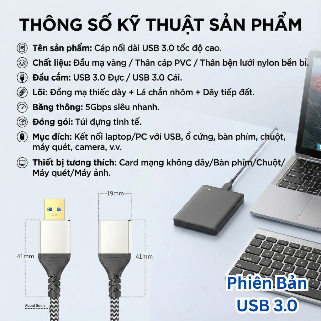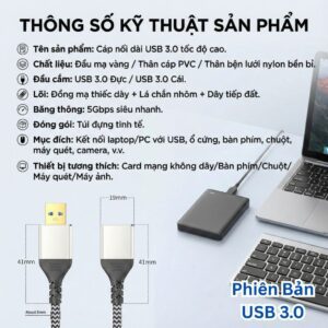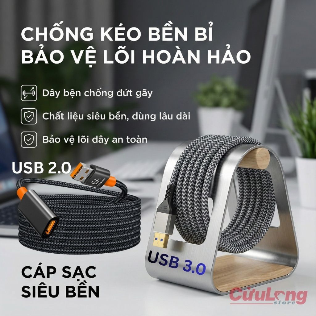 📌 Dây Nối Dài USB 3.0 Truyền Dữ Liệu 5Gbps & 2.0 Sạc Nhanh 120W