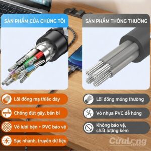 – Trên thị trường có nhiều loại dây usb 2 đầu rẻ tiền bằng nhựa dễ đứt, tín hiệu chập chờn. Sản phẩm của chúng tôi cam kết:
