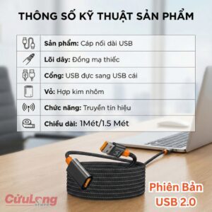 – Chuẩn kết nối: USB nối dài Đực – Cái.