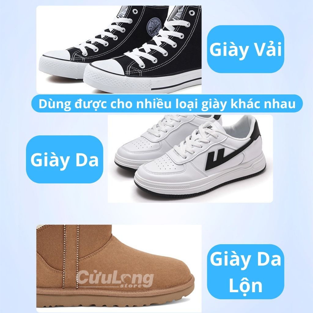 Có thể sử dụng cho mọi loại giày: sneaker, da, canvas, mesh, giày vải trắng, boot…